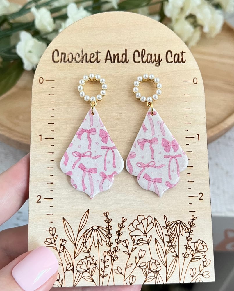 Kick off the pink ribbon month with these beautiful pink bow clay earrings! October is Breast Cancer awareness month, so show some support and help raise awareness. 5% of my sales in the month of October will be donated to the cause.