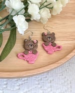 Whimsical Bear in a Teacup Earrings