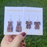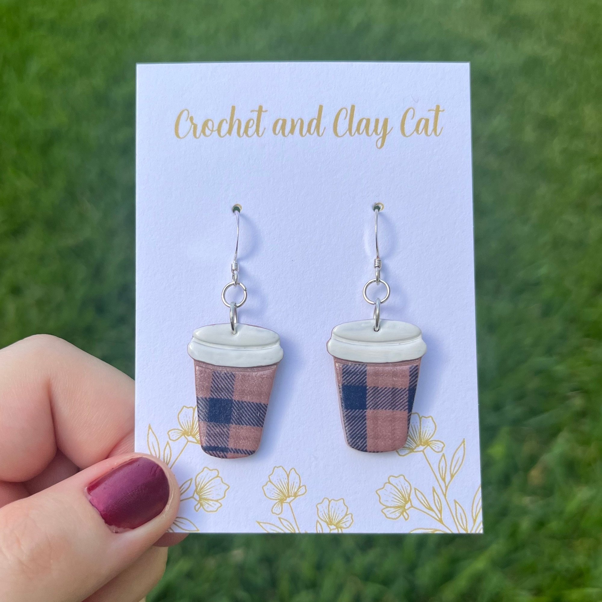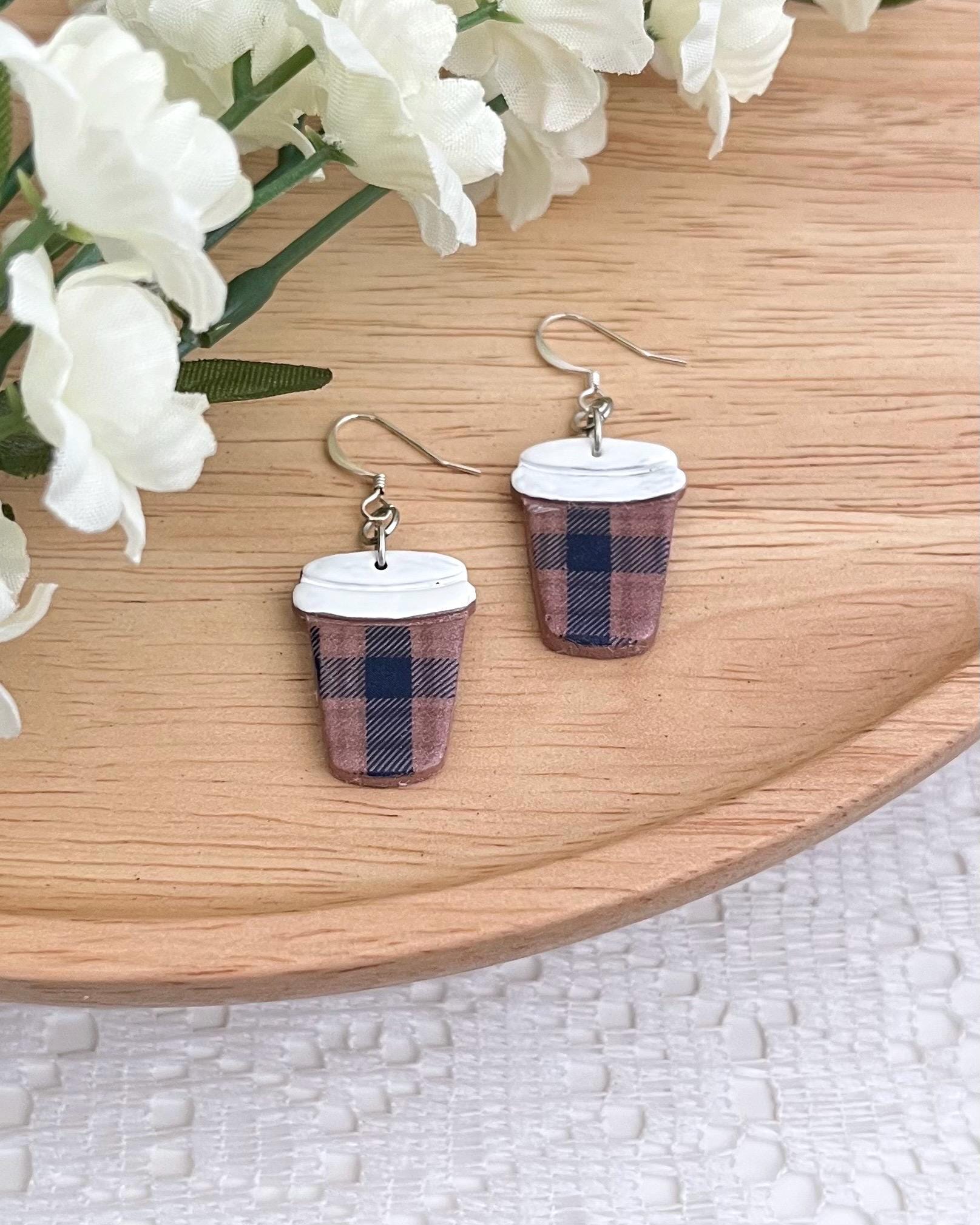 Cozy Sweater Vibes Alert! These earrings are the perfect way to welcome fall pumpkin spice, and everything nice! Adorable brown navy plaid earrings. These handmade earrings are made with polymer clay and nickel free metals for sensitive ears.
