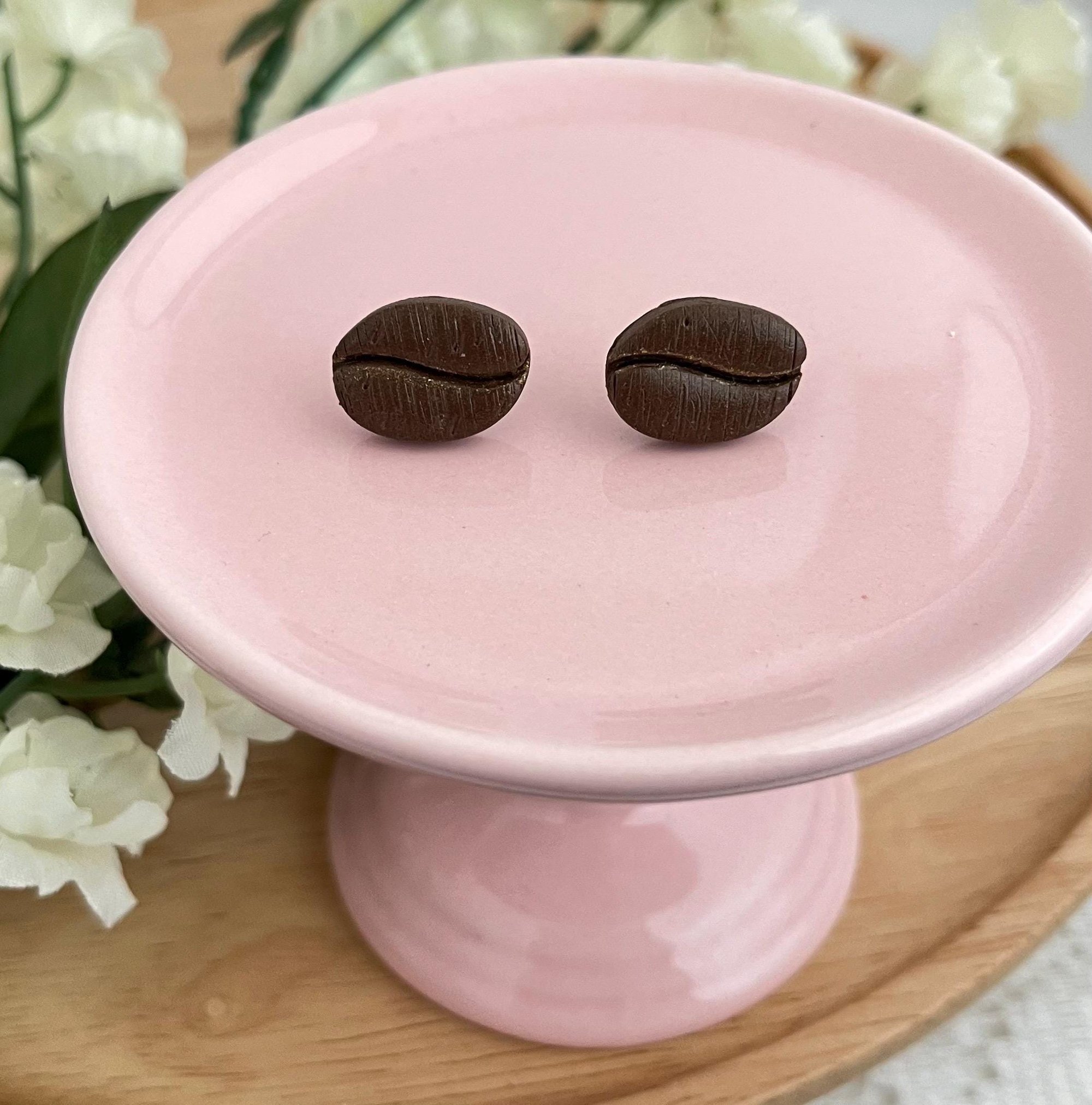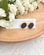 Adorable coffee bean studs. These handmade earrings are made with polymer clay and nickel free metals for sensitive ears.