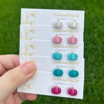 Clay Earring Care: Polymer clay is durable for everyday wear, but please handle your jewelry with care. Please don't bend your earrings, if enough pressure is put on the earrings they will break.