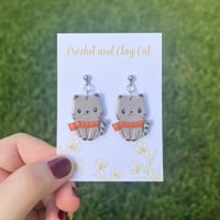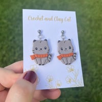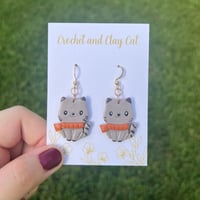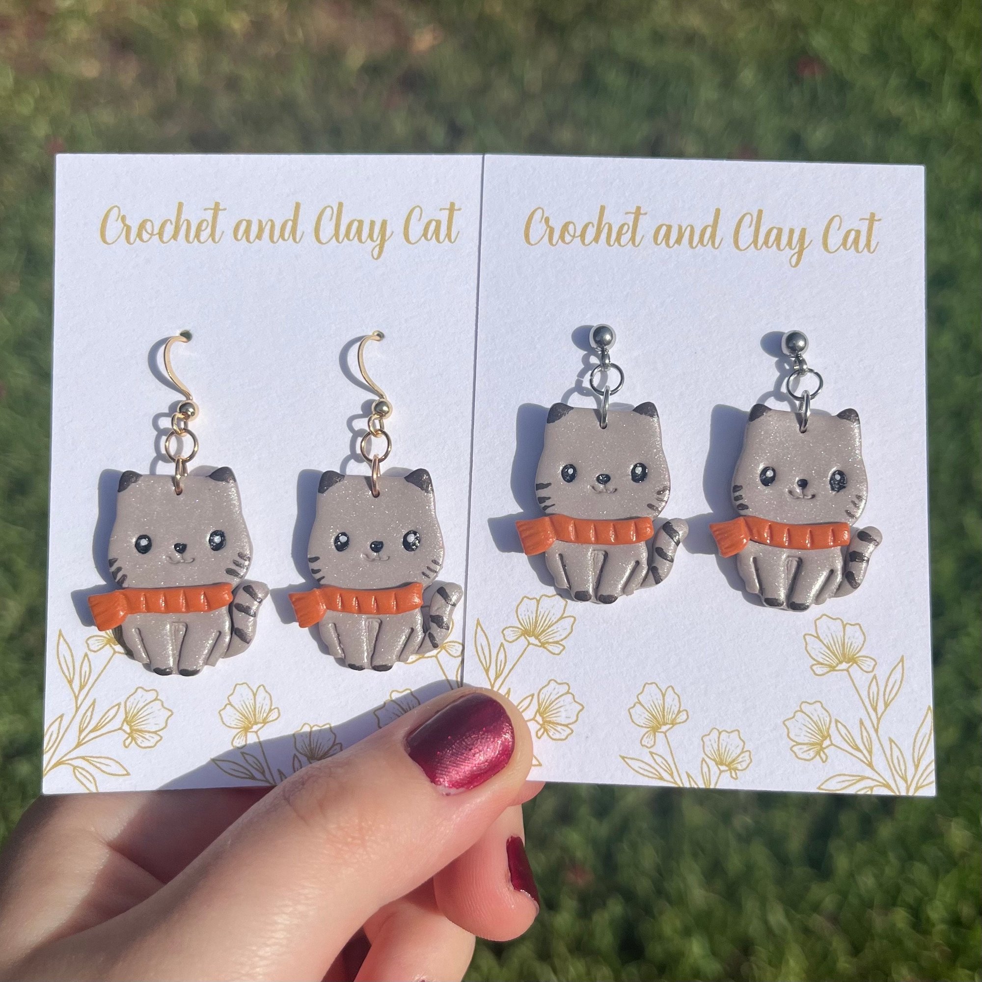 Introducing the purr-fect accessory for all cat enthusiasts out there. These adorable clay earrings feature gray cats with scarves, completing the cozy vibe. Whether you're a fall enthusiast, a feline lover, or both, these earrings are a must-have addition to your jewelry collection. Treat yourself or surprise a fellow cat-loving friend with these delightful earrings.