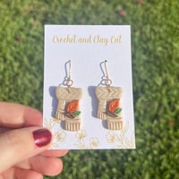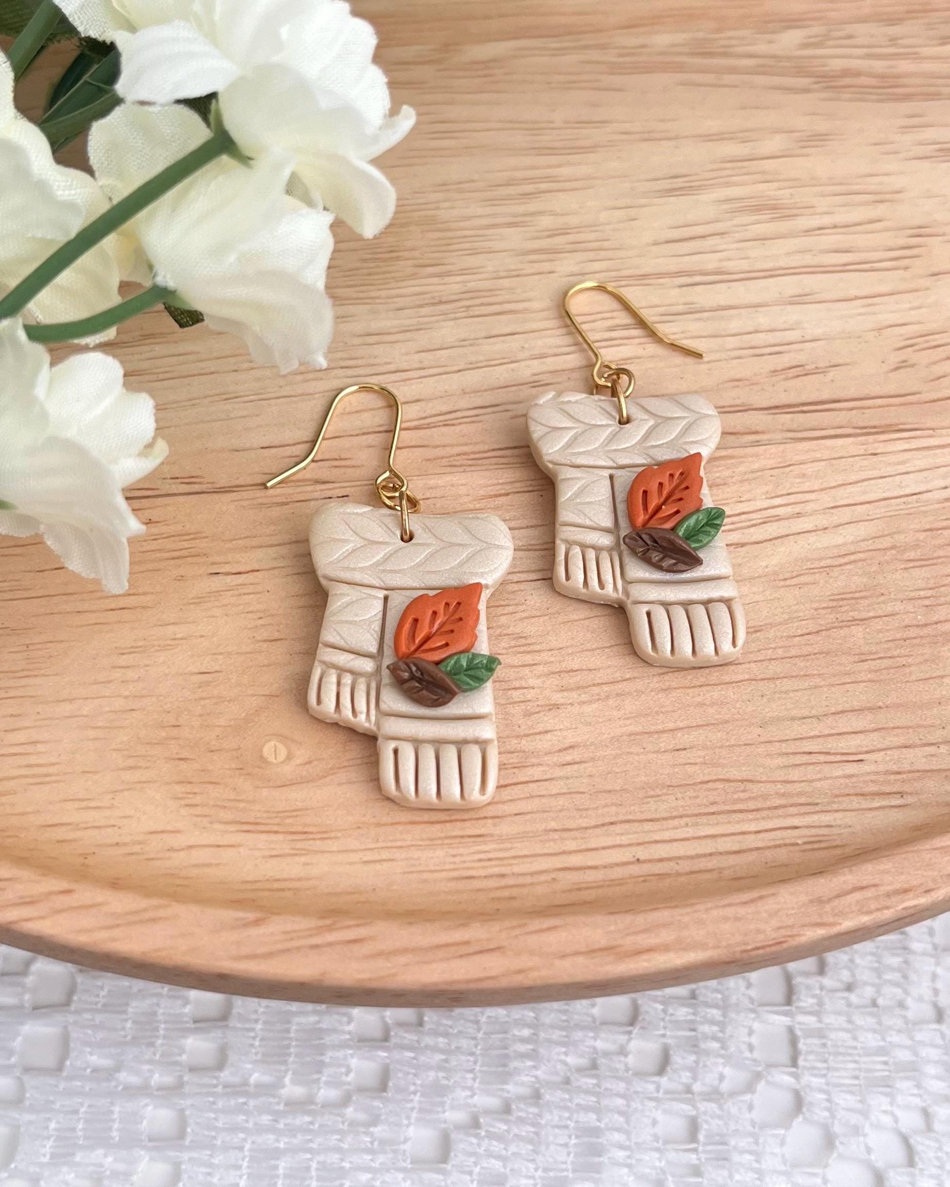 Adorable knit scarf earrings. These handmade earrings are made with polymer clay and nickel free metals for sensitive ears. Perfect for gifts! A gift for a fall birthday, or a fun touch to add to your photoshoot.
