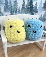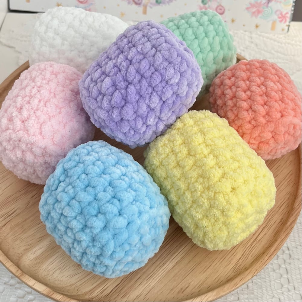 These mini marshmallow plushies are soft and fun to keep your mind busy! They are a fun stim toy for yourself or a loved one that is neurodivergent. Made out of yarn and filled with polyfil stuffing, these stress mallows are about the size of a stress ball but way softer!