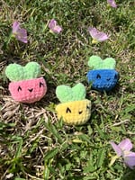 Please note: Not intended for young children. These are made out of polyester yarn and stuffing which is not harmful unless ingested. Still these plushies were intended for neurodivergent adults and teenagers. Keep away from kids under 14 who might be prone to chewing, picking or using plush not as intended. We are not liable for plushies being damaged when mishandled or used not as intended. Do not microwave!