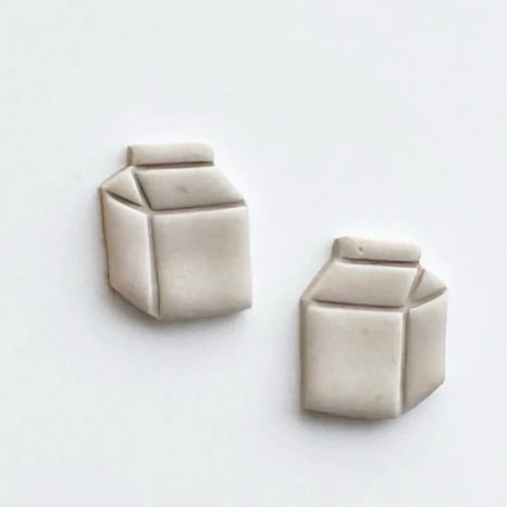 Apple juice box earrings requested by GrandGestureBooks