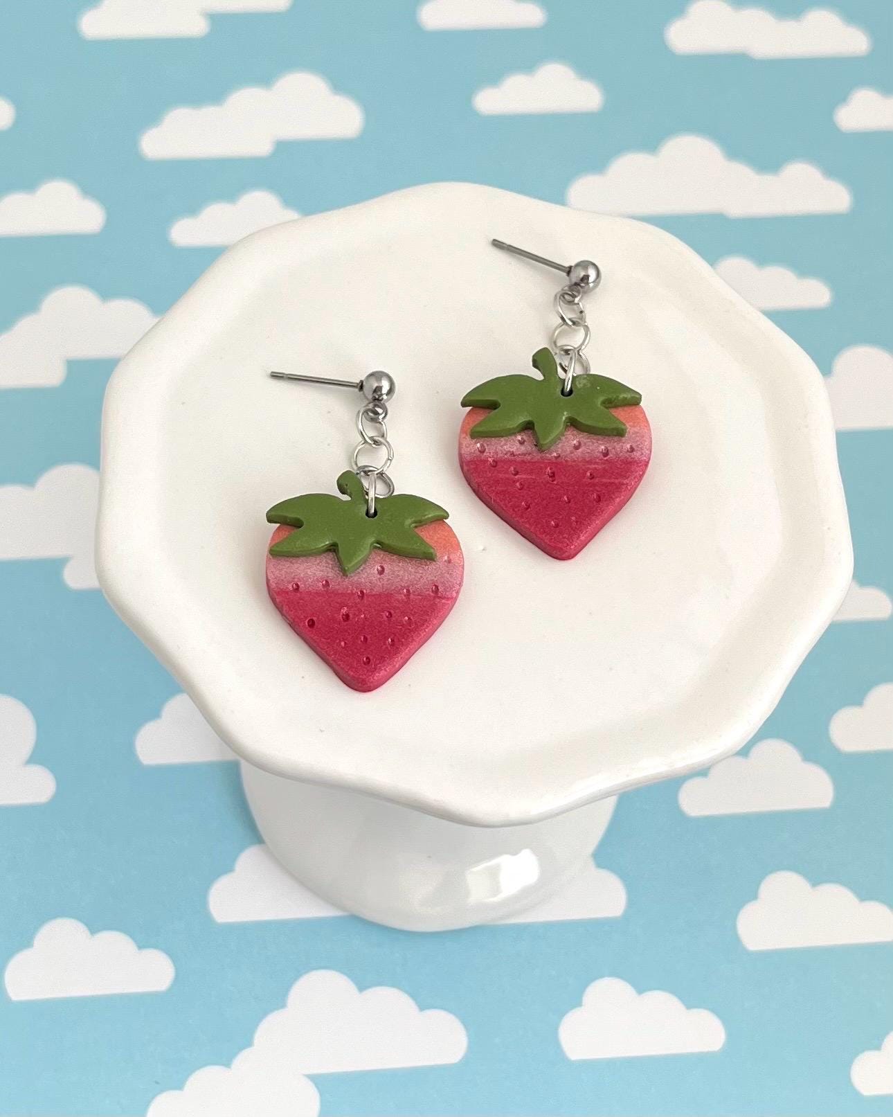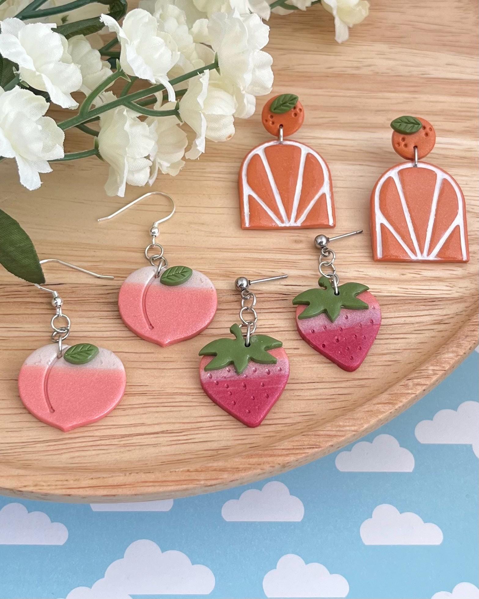 These handmade earrings are made with polymer clay and nickel free metals for sensitive ears. Perfect for gifts! Available in a variety of styles, these earrings are different fruits. A gift for a birthday, or a fun "just because I thought of you", kind of gift.