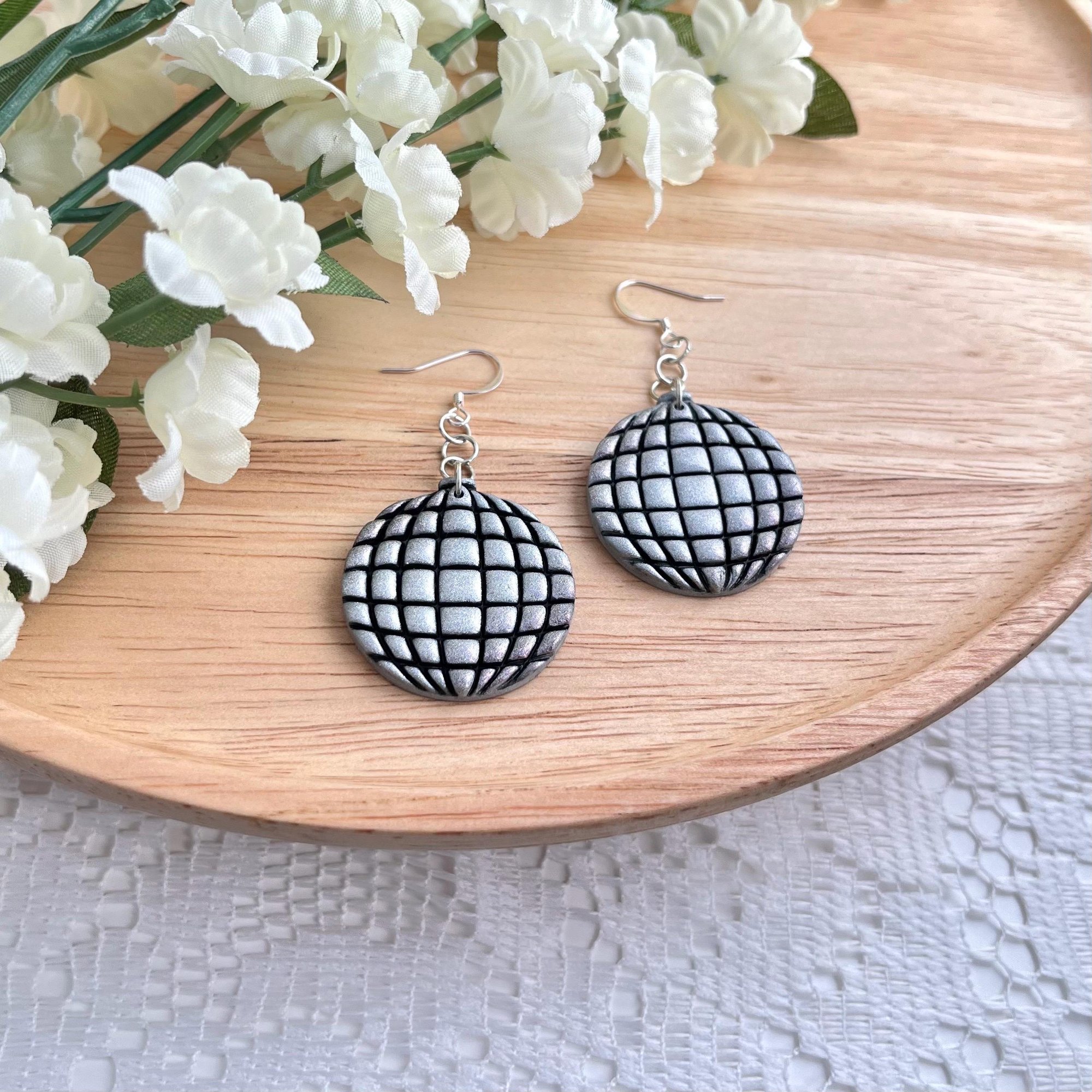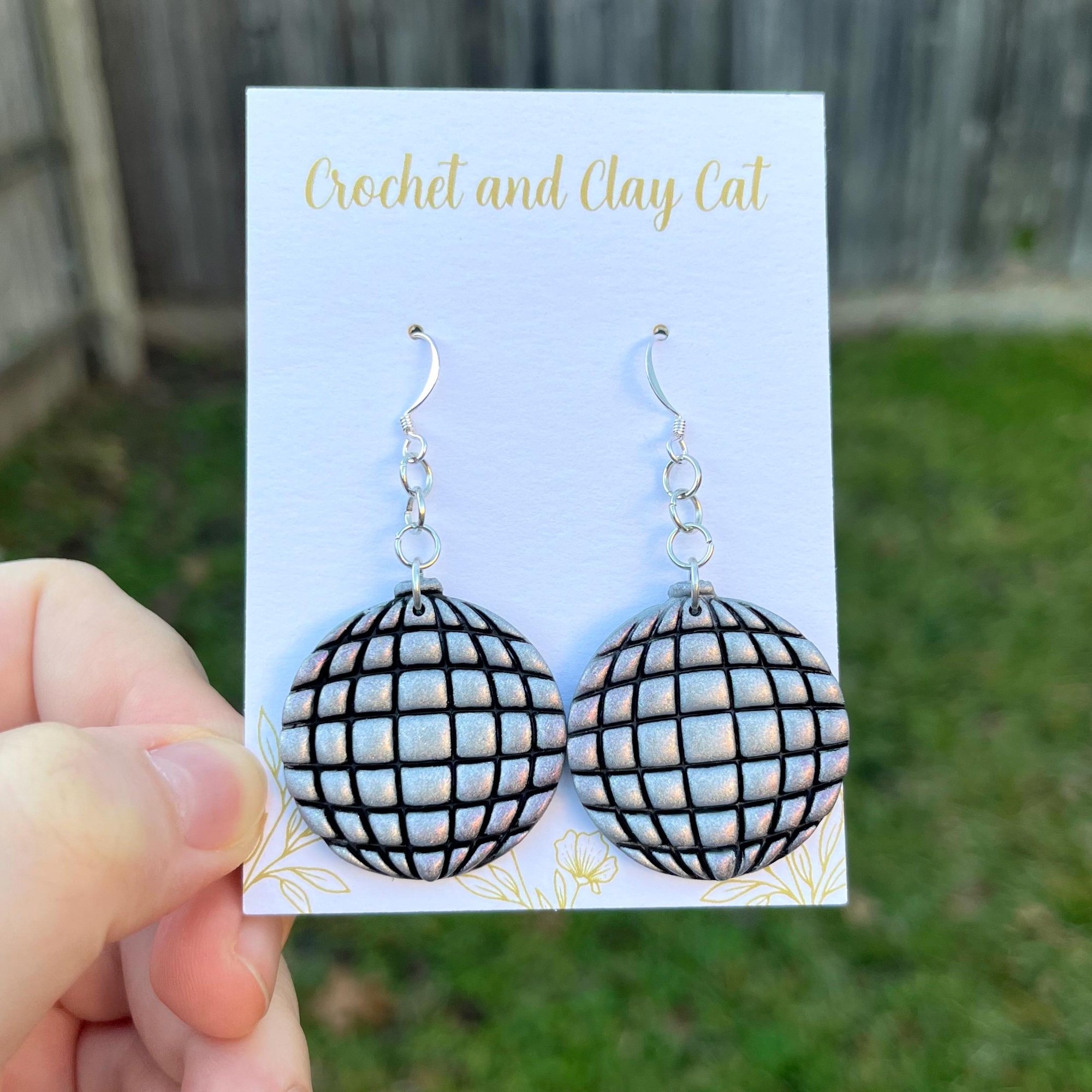 Beautiful handmade disco ball earrings made with polymer clay and nickel free metals for sensitive ears. Glossy and sparkly these earrings are sure to make a statement. Available in a variety of styles.