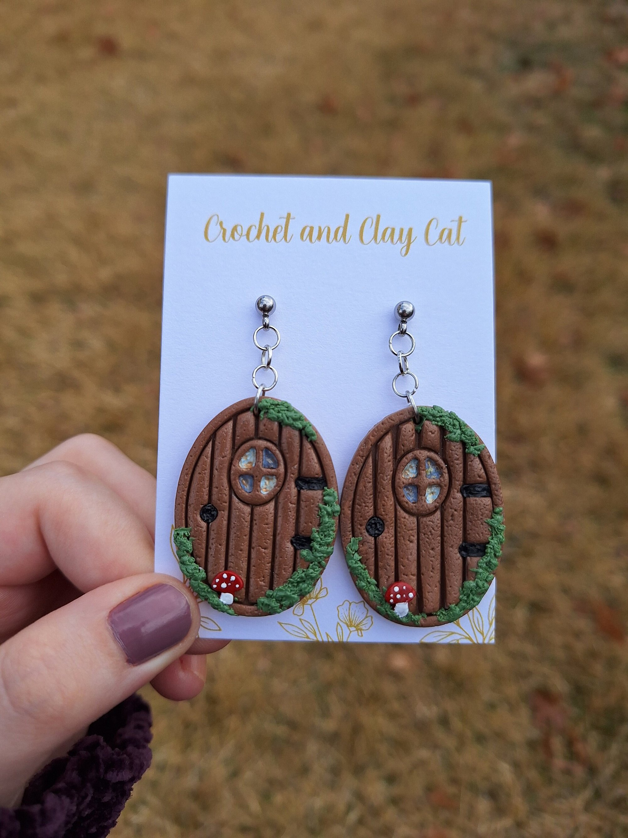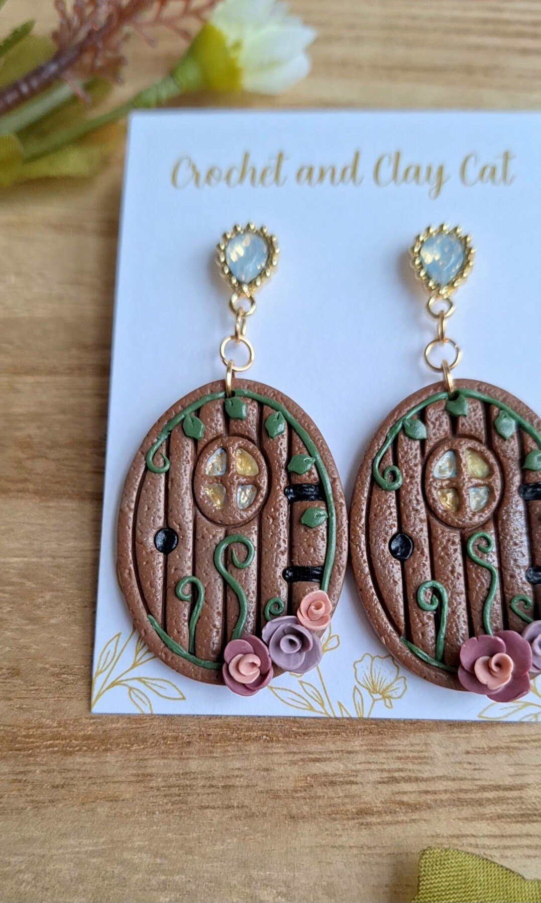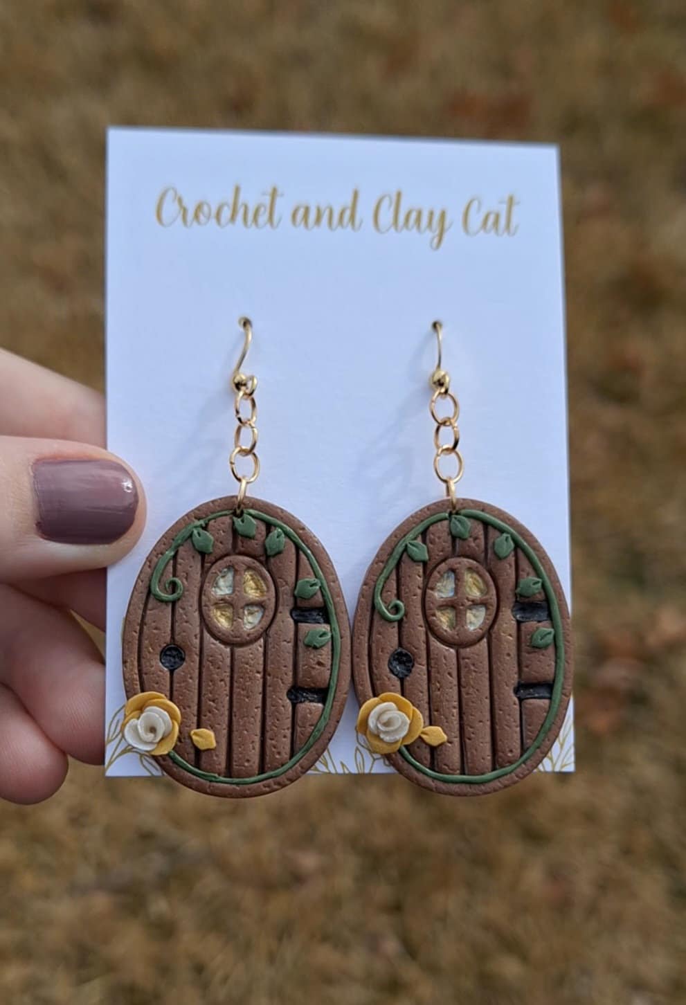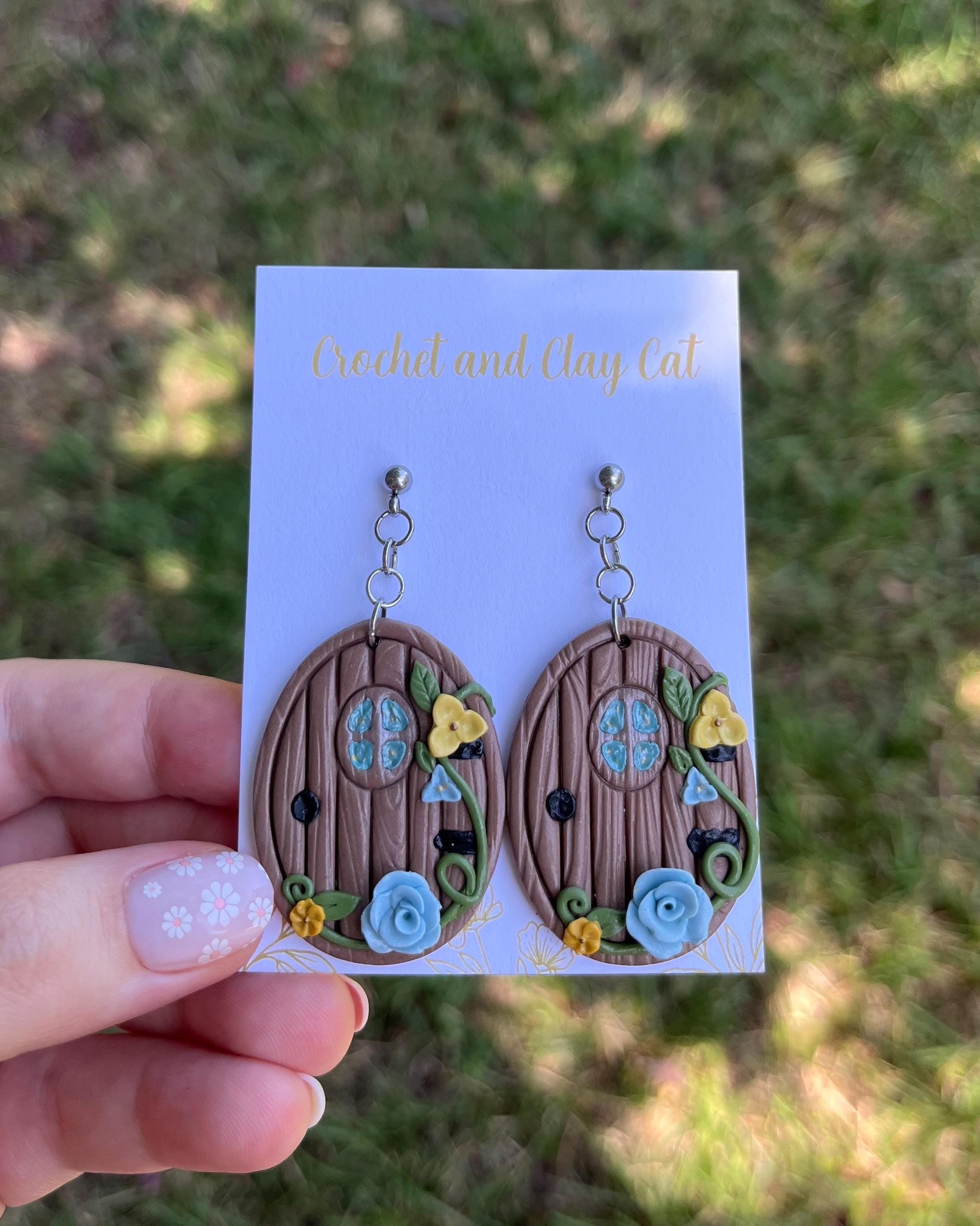 Introducing my enchanted fairy door polymer clay earrings, the perfect accessory to add a touch of whimsy and magic to your everyday attire! Each door is adorned with delicate floral patterns and textured accents to create an authentic and mystical look. With their lightweight design and hypoallergenic hardware, these earrings are comfortable to wear all day long. Whether you're attending a fairy-themed event or simply want to embrace your inner fantasy lover, these earrings are sure to make a statement and bring a dash of fantasy charm to your style. Get ready to embark on a magical journey with these captivating earrings! Handmade earrings made with polymer clay and nickel free metals for sensitive ears.