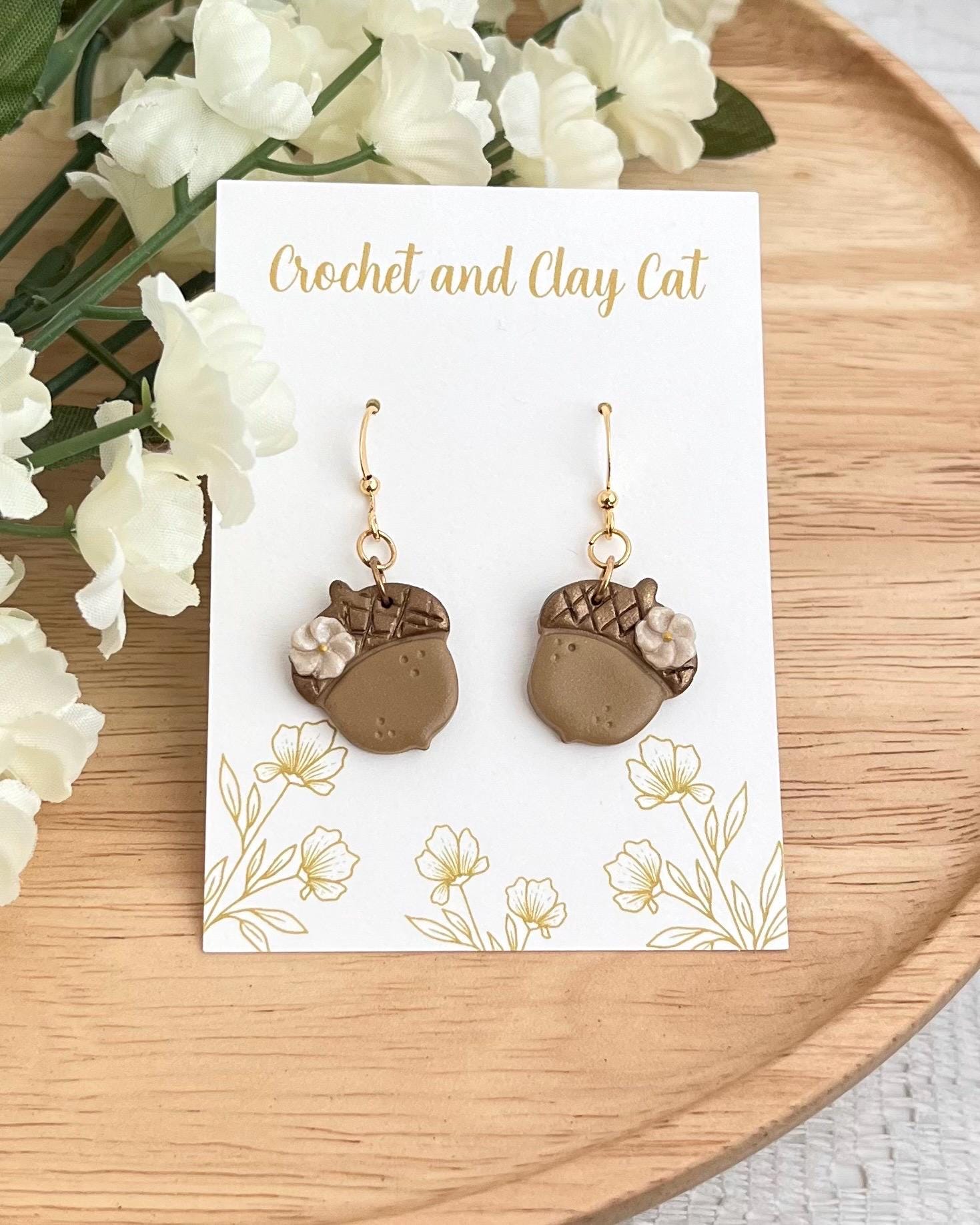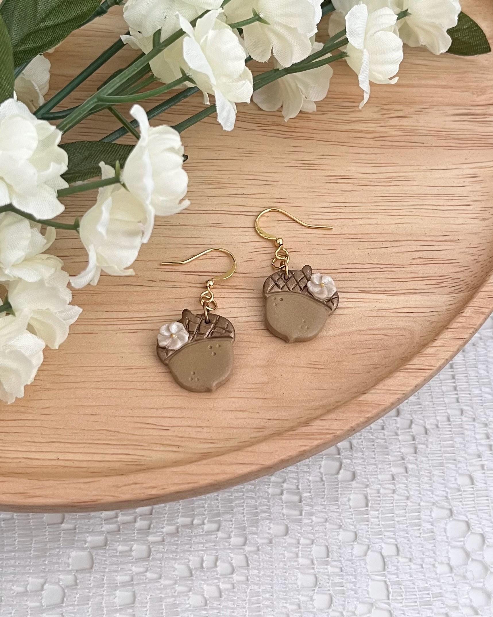 Fall into style with these adorable acorn polymer clay earrings. Made with lightweight and comfortable polymer clay, these earrings are perfect for daily wear or to add a touch of autumn charm to any outfit. Whether you're attending a fall festival or simply want to embrace the cozy vibes of the season, these fall-themed polymer clay earrings are the perfect accessory for any fall lover.