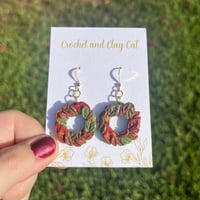 Fall into style with these stunning leaf wreath polymer clay dangle earrings. Handcrafted with care, these earrings feature intricate designs inspired by the beauty of the autumn season. Made with lightweight and comfortable polymer clay, these earrings are perfect for daily wear or to add a touch of autumn charm to any outfit.