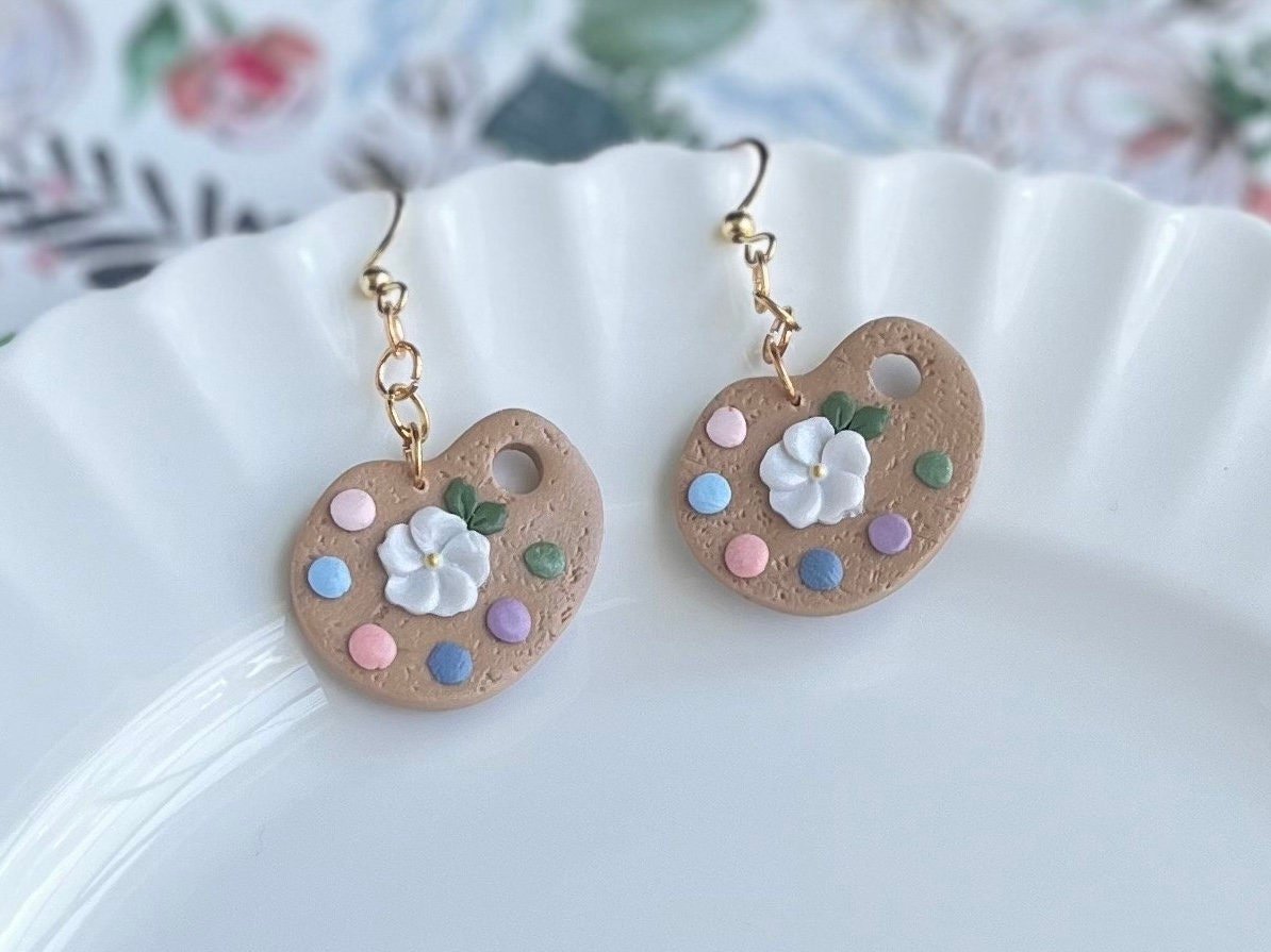 These artist palette polymer clay earrings are eye-catching statement pieces, that are also elegant and simple.