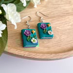 Whimsical Floral Book Dangly Earrings