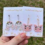 Whether you're a nature lover, an avid collector of unique accessories, or simply looking for something cute and funky to add to your collection, these piglet earrings are sure to delight! The very essence of cottagecore fashion, these are handmade with precision and care, each earring features a delightful pink piggy wearing a flower crown, that is sure to turn heads. Made using durable, lightweight polymer clay, these earrings are easy to wear and comfortable on your ears, making them perfect for all-day wear.