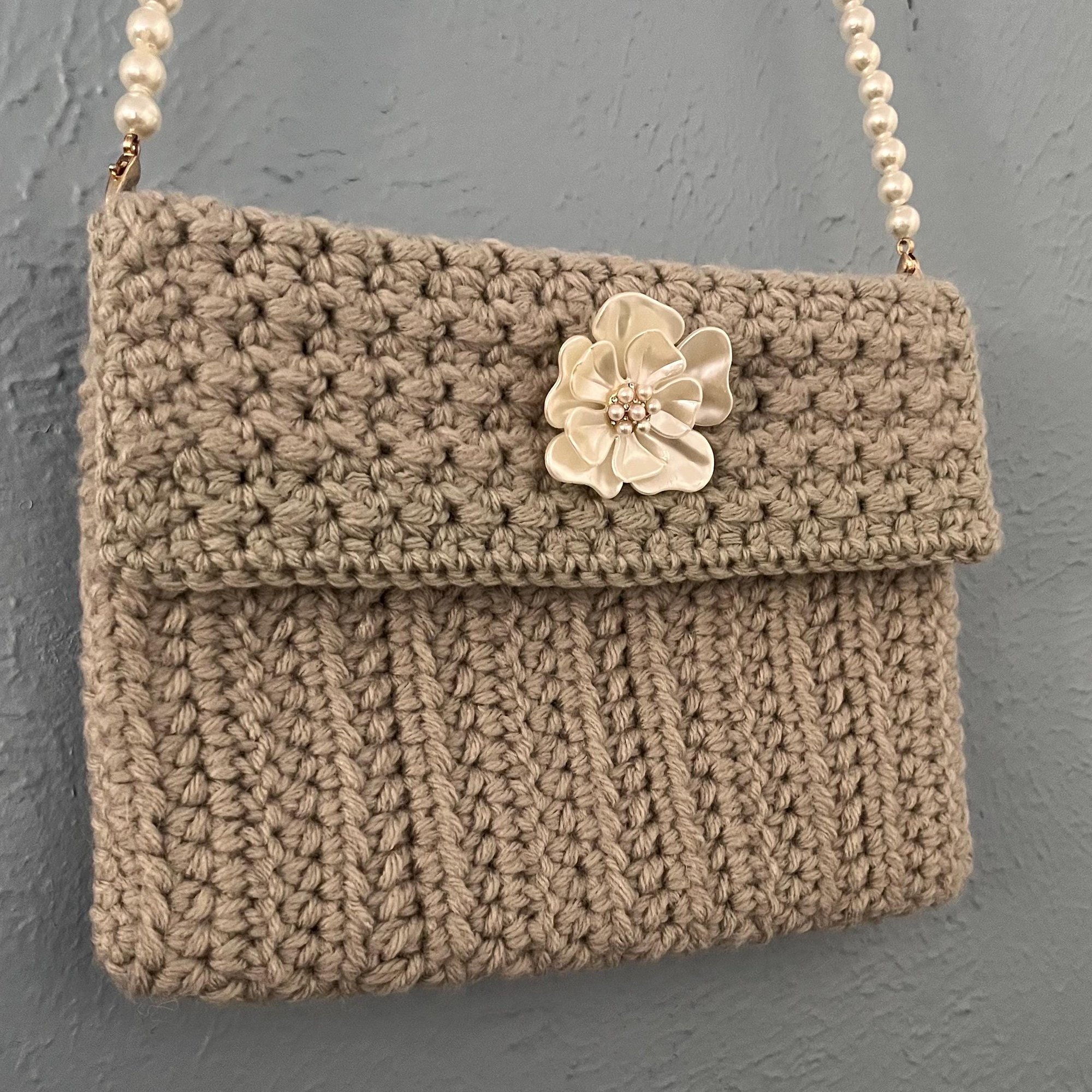 Gray Pearl Crocheted Shoulder Bag - Ready to ship