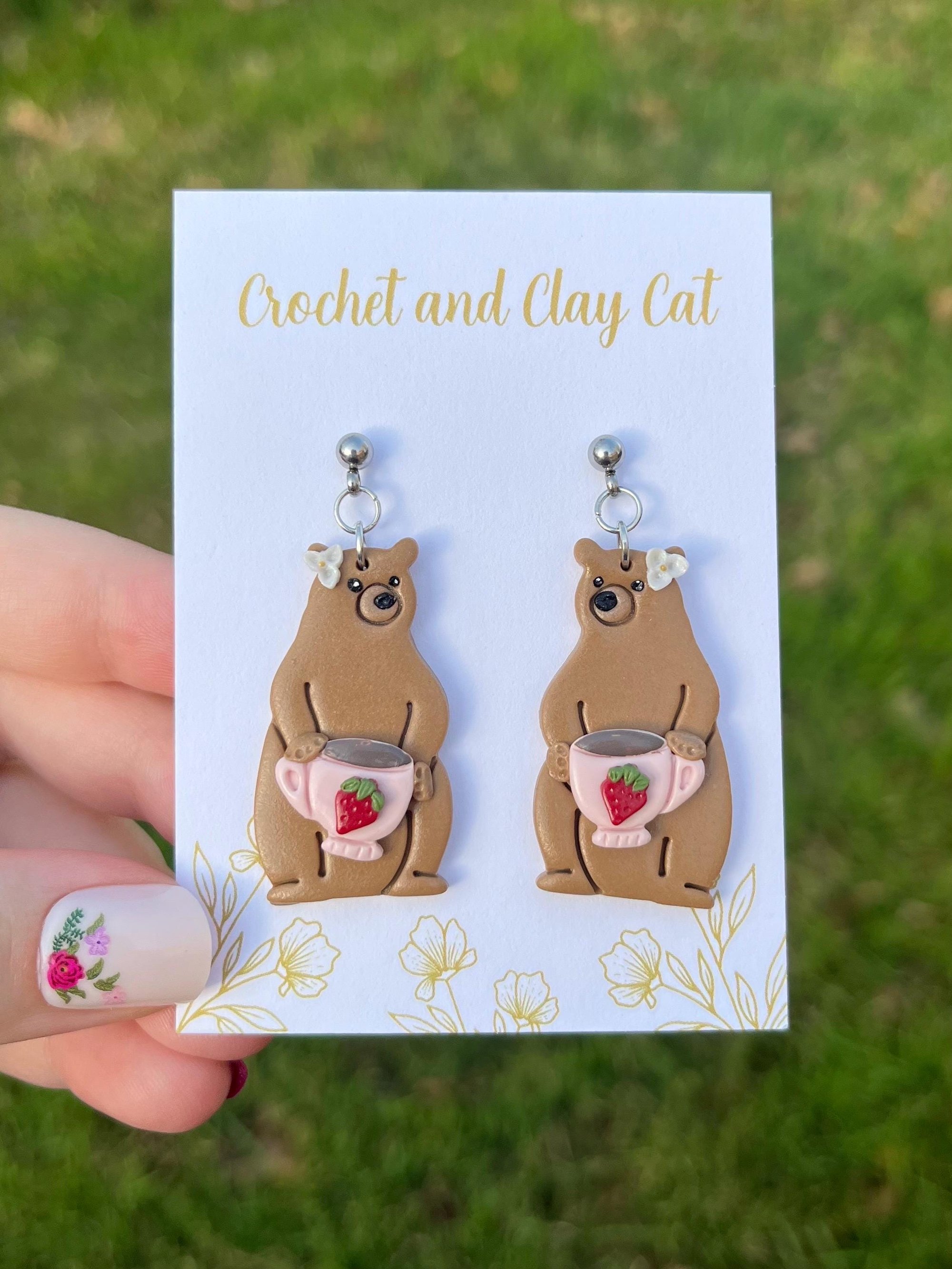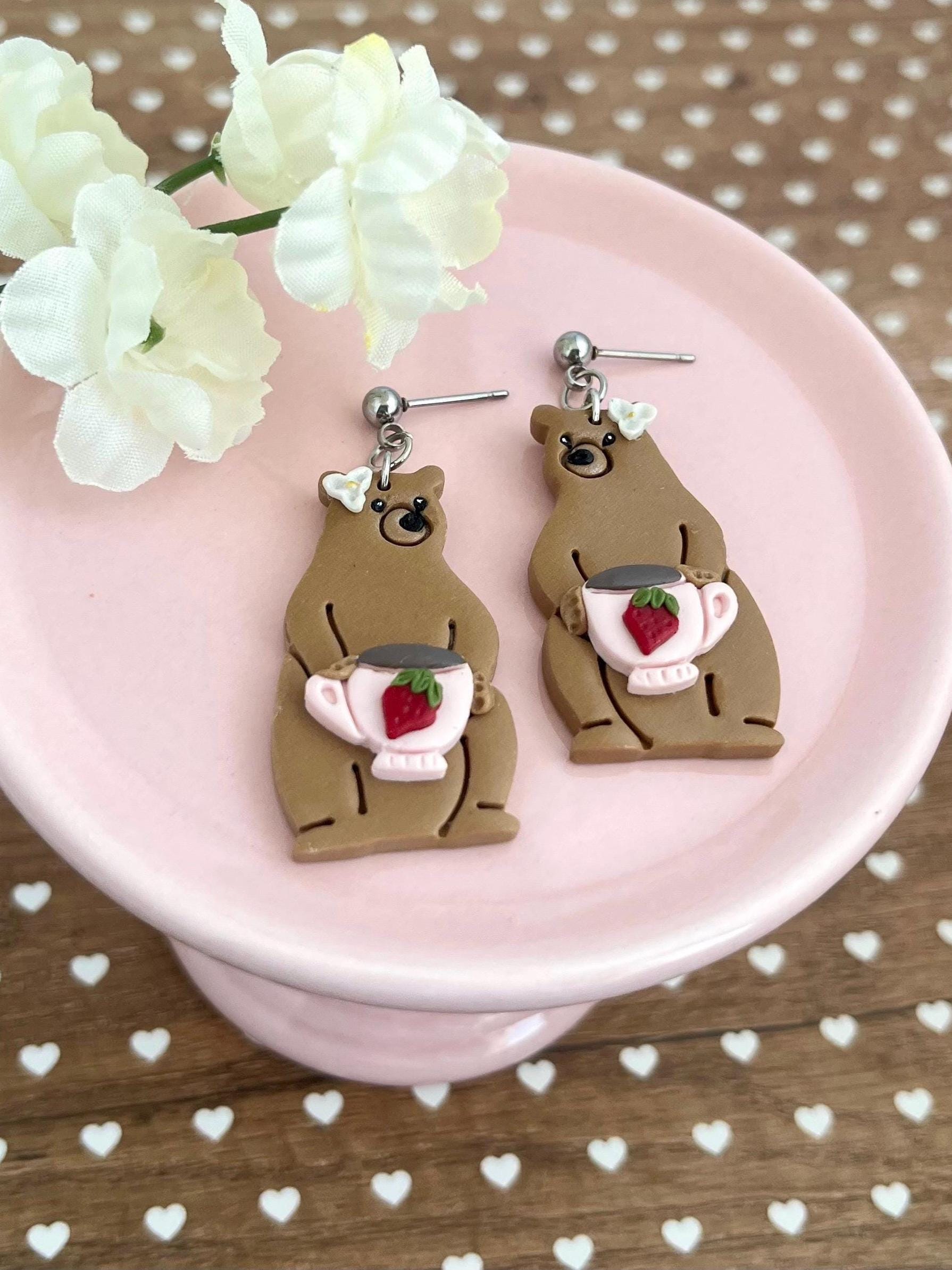 The very essence of cottagecore fashion, these are handmade with precision and care, each earring features a brown bear that is sure to turn heads. Made using durable, lightweight polymer clay, these earrings are easy to wear and comfortable on your ears, making them perfect for all-day wear. With their unique design and charming details, these earrings are a must-have accessory for any quirky, nature-loving fashionista!