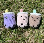 Have a boba lover in your life? These plushies are perfect for gifting! If you're a fan of bubble tea and could use a little extra comfort during times of stress or anxiety, this crocheted plushie is just what you need! Handcrafted with love and care, this boba tea drink crocheted plushie is not only adorable but also functional.