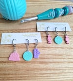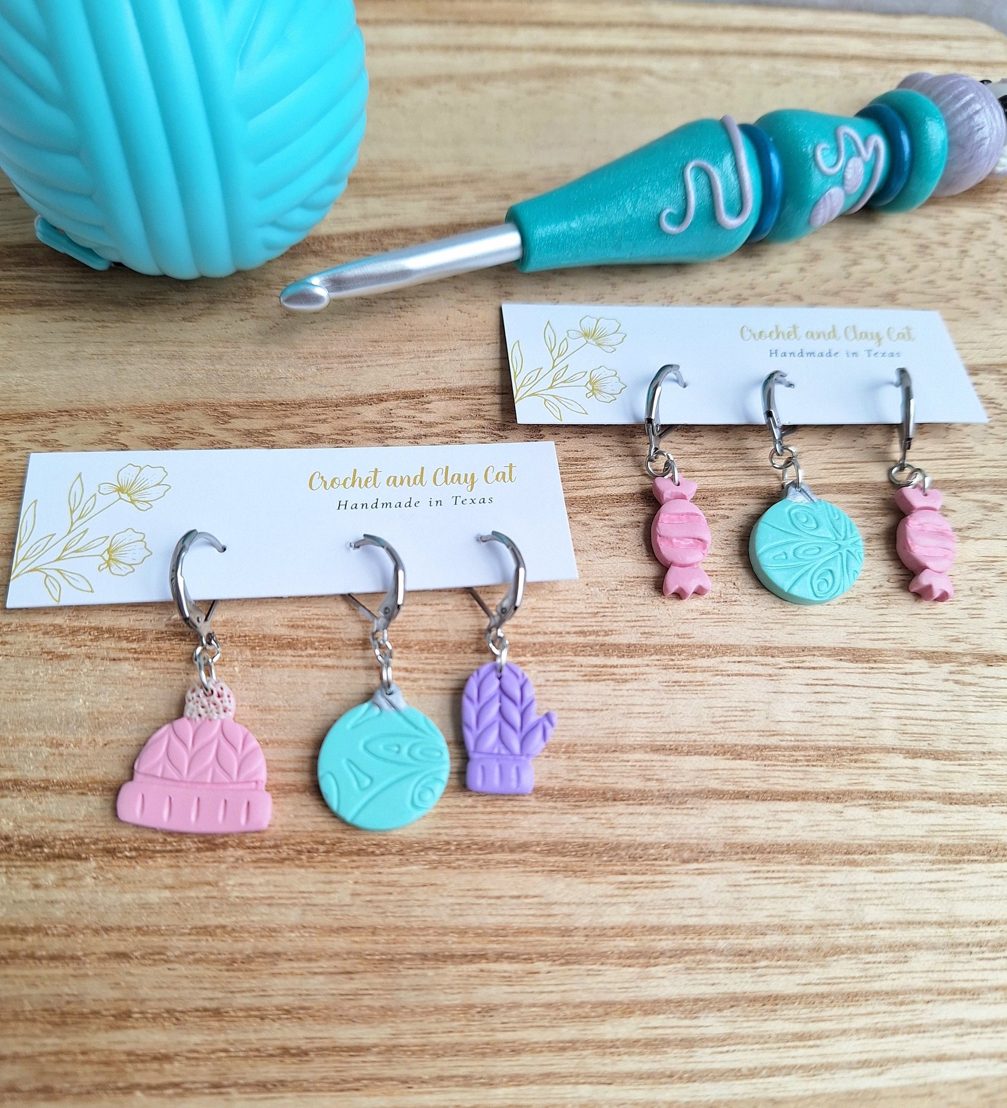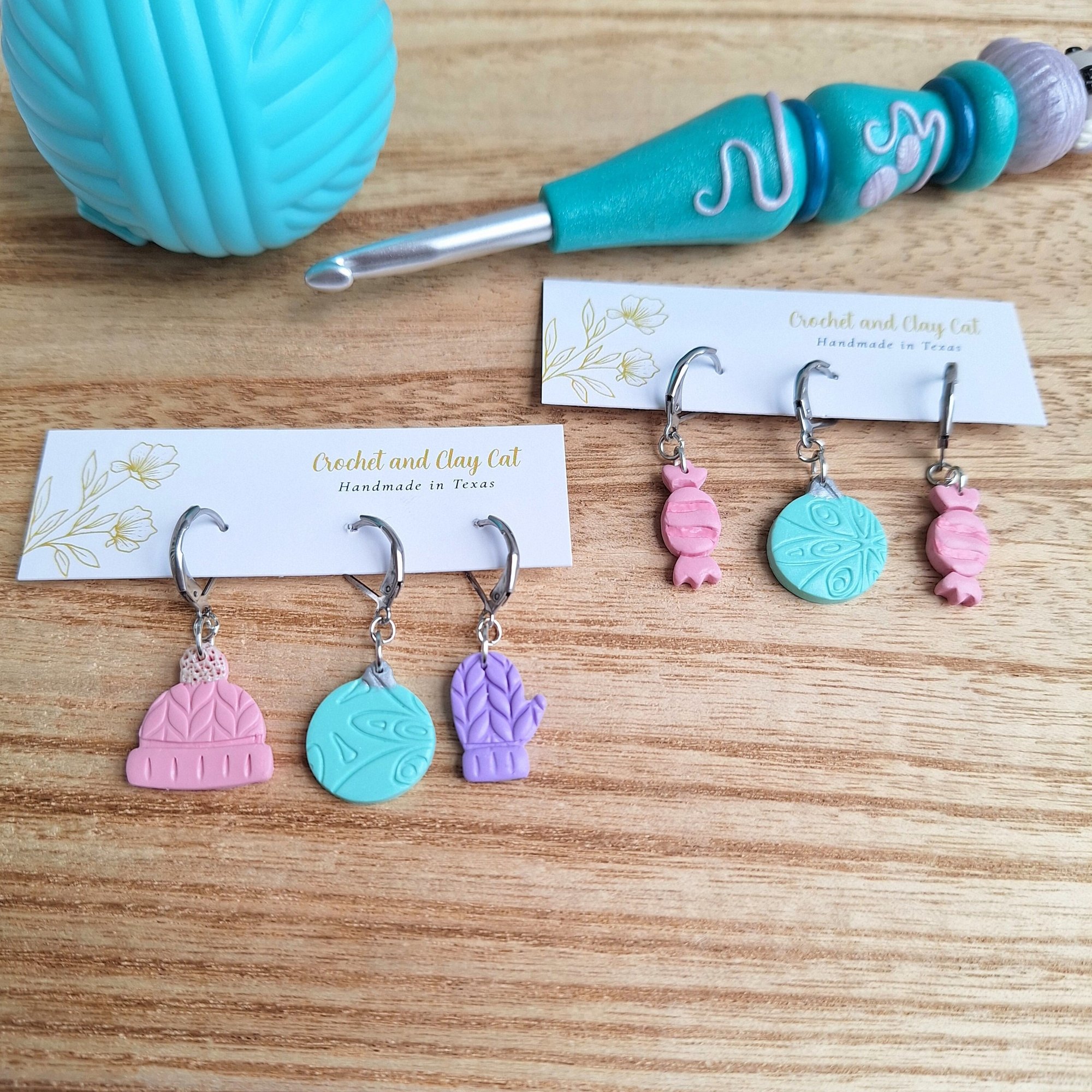 Adorable handmade stitch markers made with polymer clay and stainless steel leverback clips. These are the perfect gift for a fiber artist friend.
