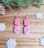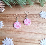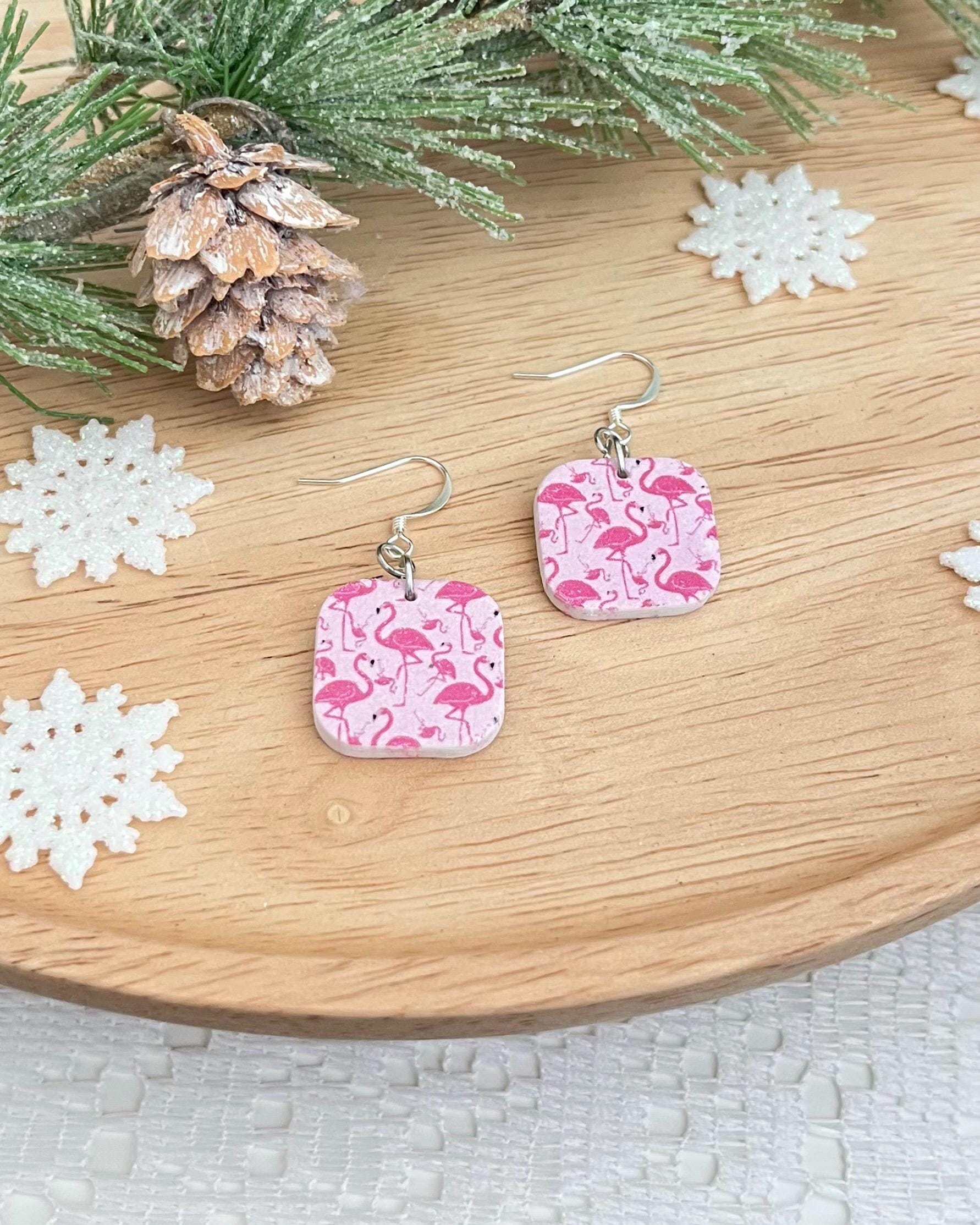Adorable pink flamingo holiday earrings. These handmade earrings are made with polymer clay and nickel free metals for sensitive ears.