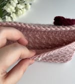 Beautiful crocheted dusty rose pink wallet. This bag is the perfect size for a card case and an essential or too.