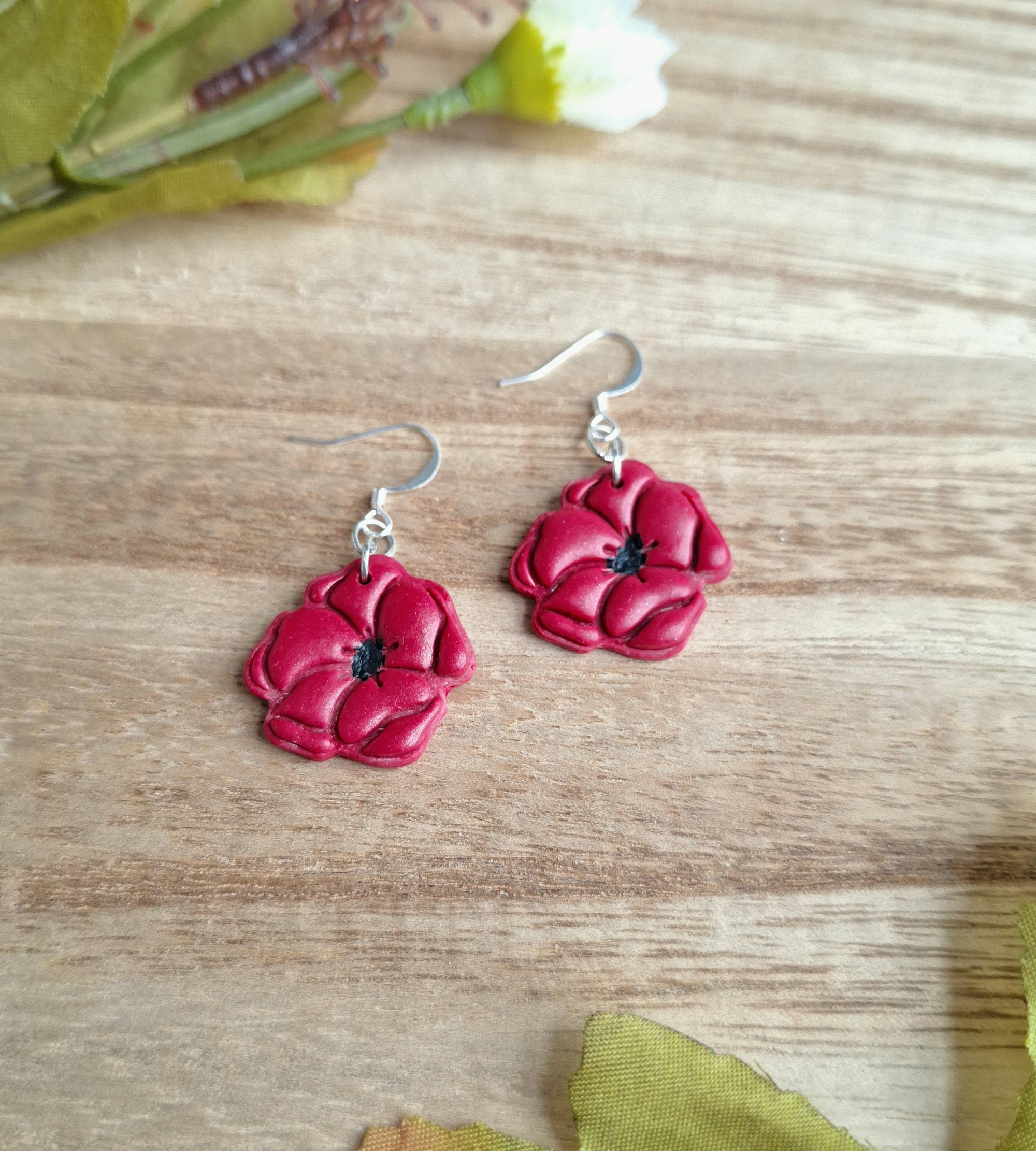 Make a statement with these dazzling red poppy flower polymer clay earrings. Featuring flowers in vibrant red, these earrings are a fun addition to any outfit. The perfect accessory for weddings, parties, or any special occasion.