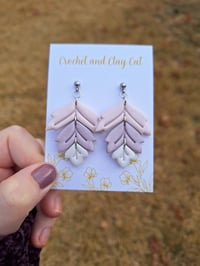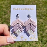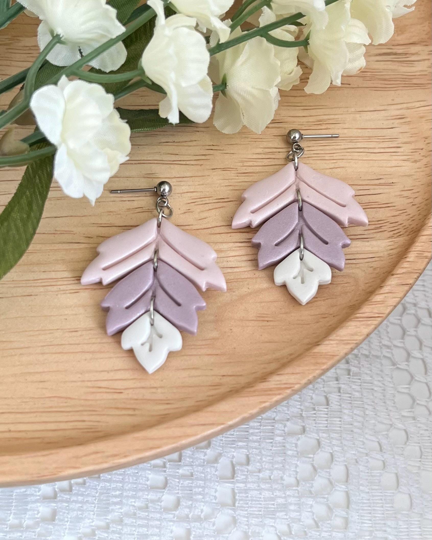 Stunning tiered leaves polymer clay earrings. Handcrafted with care, the ombre colors capture the essence of the season. Add a touch of nature-inspired charm to any outfit.